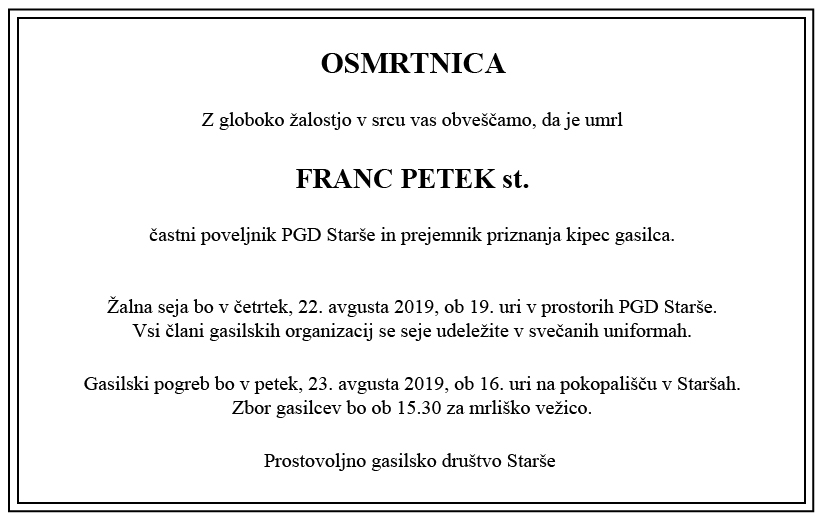 PROSTOVOLJNO GASILSKO DRUŠTVO STARŠE Starše 76a 2205 Starše